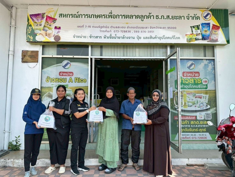 และสหกรณ์การเกษตรเมืองยะลา จำกัด ได้กำหนดมาตรการให้ความช่วยเหลือสมาชิกสหกรณ์หลังน้ำลด โดยการแจกข้าวสาร ถุงละ 5 กิโลกรัม จำนวน 300 ถุง ให้กับสมาชิกสหกรณ์ที่ได้รับผลกระทบจากอุทกภัยในครั้งนี้ด้วย