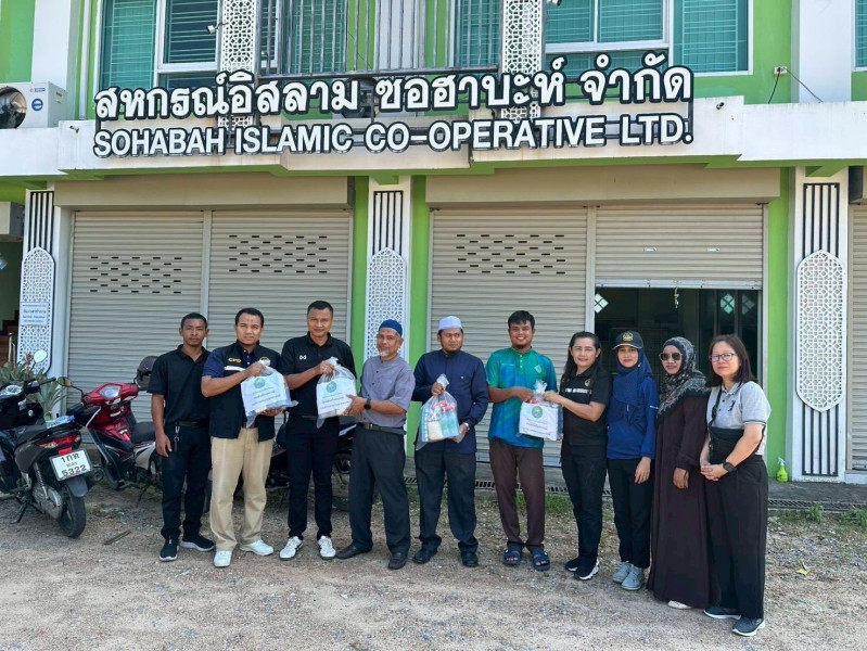ทั้งนี้ ได้รับการสนับสนุนจากกรมส่งเสริมสหกรณ์ ได้แก่ ข้าวสาร 1,500 กก. ไข่ไก่ 2,100 ฟอง นมกล่อง 2,880 กล่อง น้ำดื่ม 1,200 ขวด และจากบุคลากรสำนักงานสหกรณ์จังหวัดยะลาร่วมสนับสนุนบะหมี่กึงสำเร็จรูป 1,080 ห่อ น้ำดื่ม 1,800 ขวด ในการจัดทำถุงยังชีพดังกล่าว